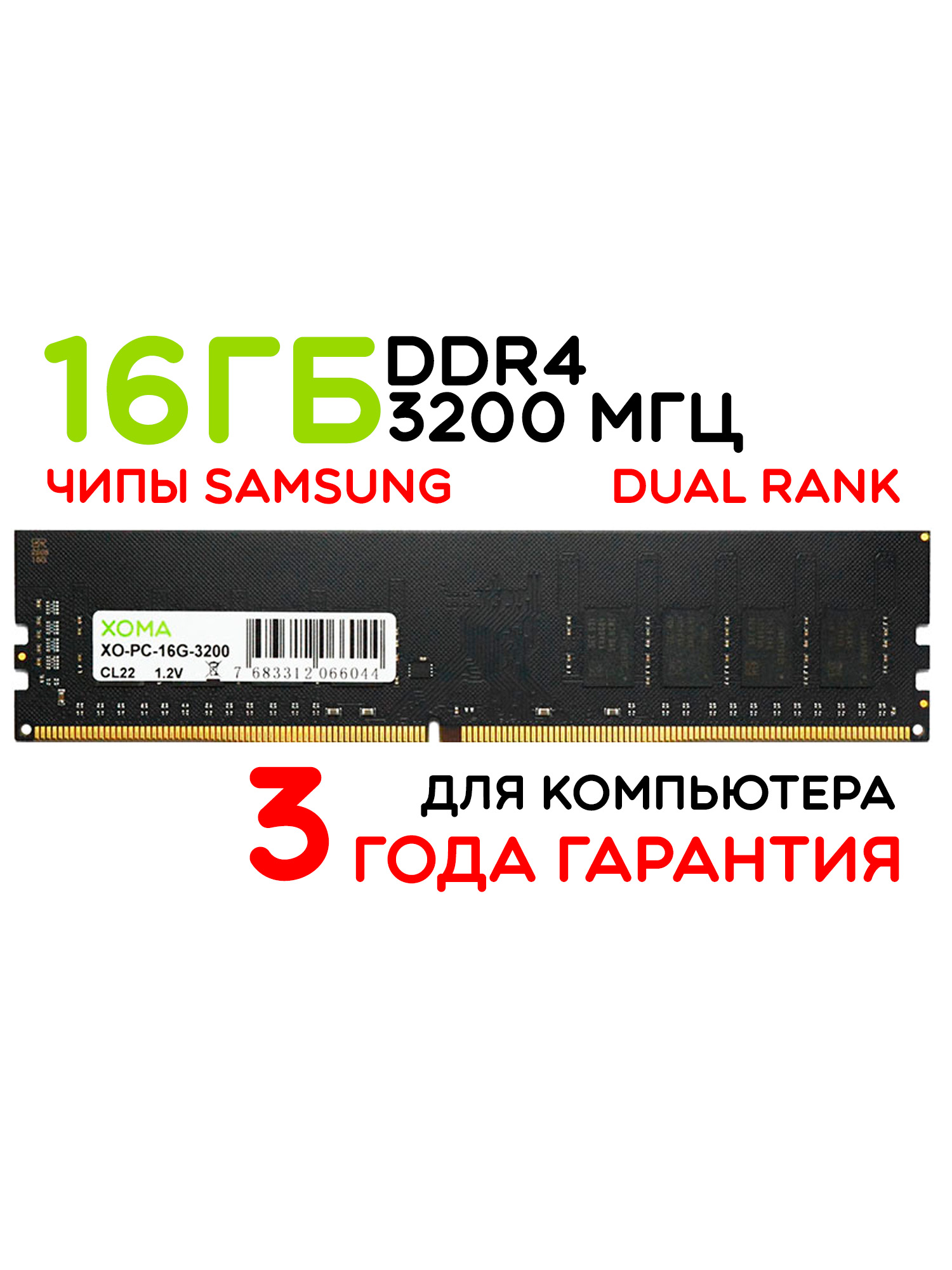 Компьютер тормозит? Не хватает памяти? Добавьте в комп оперативную память DDR4 XOMA XO-PC-16G-3200. Данные модули памяти являются универсальным решением для повышения производительности и отзывчивости мощных компьютеров, в том числе игровых. Данная память подойдёт для установки в персональные компьютеры ПК, поддерживающие SDRAM DDR4 DIMM. Если установить 2 планки памяти РАМ ДДР4 16ГБ, то они могут работать в двухканальном режиме. Память является двухранговой. Двухранговая RAM Dual Rank более производительная, чем одноранговая Singl rank. Данная память отлично работает на частоте 3200 МГц 25600 MB/sec. Так же успешно может работать на более низких частотах - 2666 МГц 21300 MB/sec., 2400 МГц 19200 MB/sec. и 21333 МГц 17000 MB/sec. Тайминги модуля памяти – 22-22-22-52. Напряжение питания 1.2 В. В данных модулях установлены чипы памяти SAMSUNG (Sec). Гарантия на ОЗУ 3 года. Используйте в своём компьютере только качественные компьютерные комплектующие. С оперативкой XOMA ваш ПК прослужит долго и будет радовать вас безупречной работой.
