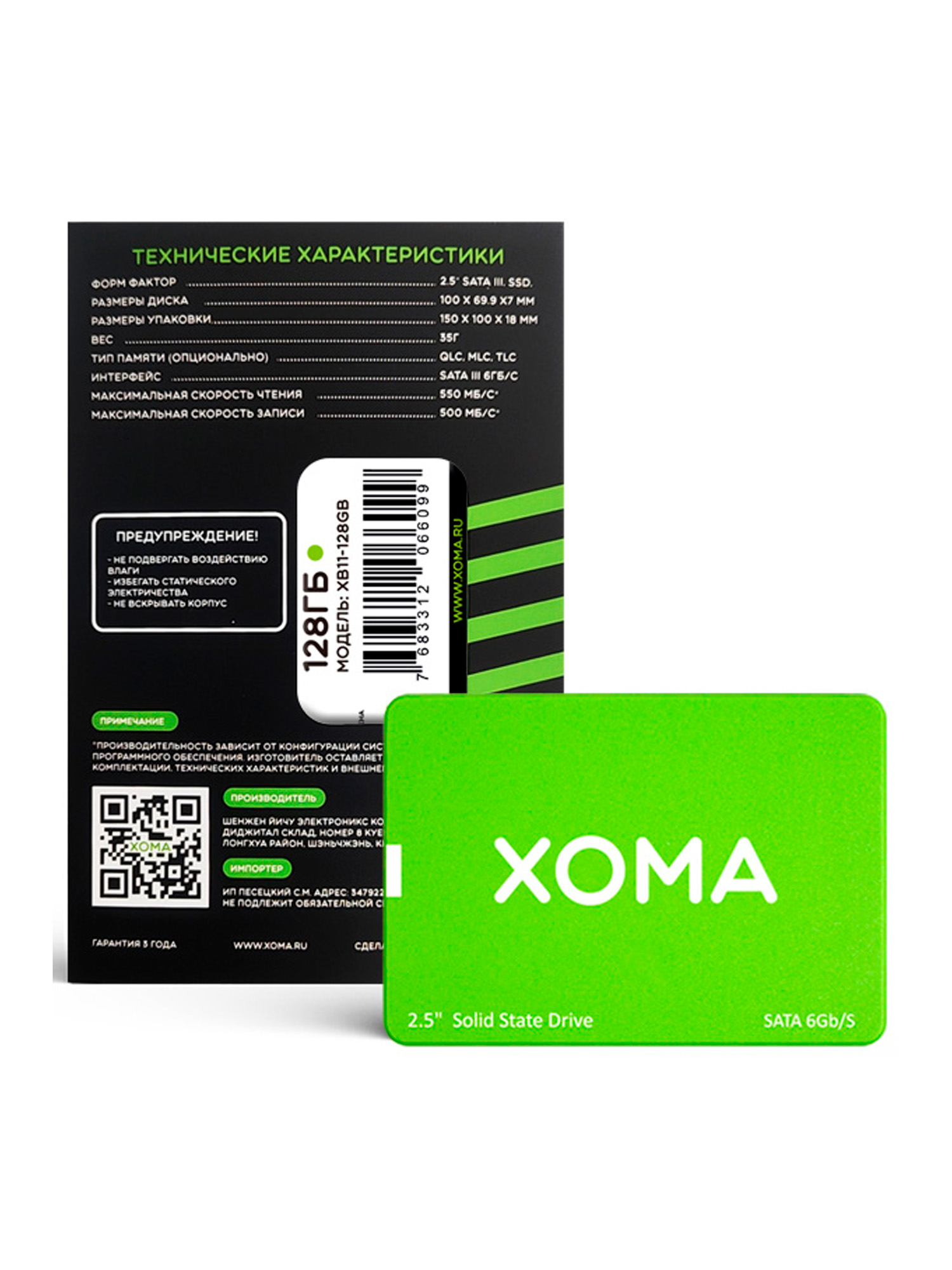 SSD диски XOMA прекрасная возможность увеличить производительность и скорость работы вашего компьютера или ноутбука. Скорость загрузки увеличится в несколько раз по сравнению с обычным жестким диском HDD. Так же у SSD отсутствуют движущиеся части, что повышает надежность всего устройства. Время наработки на отказ у дисков составляет 2000000 часов. ССД XOMA долго прослужат вам верой и правдой, сохранят ваши данные и подарят комфортную работу на обновленном компьютере или ноутбуке.
