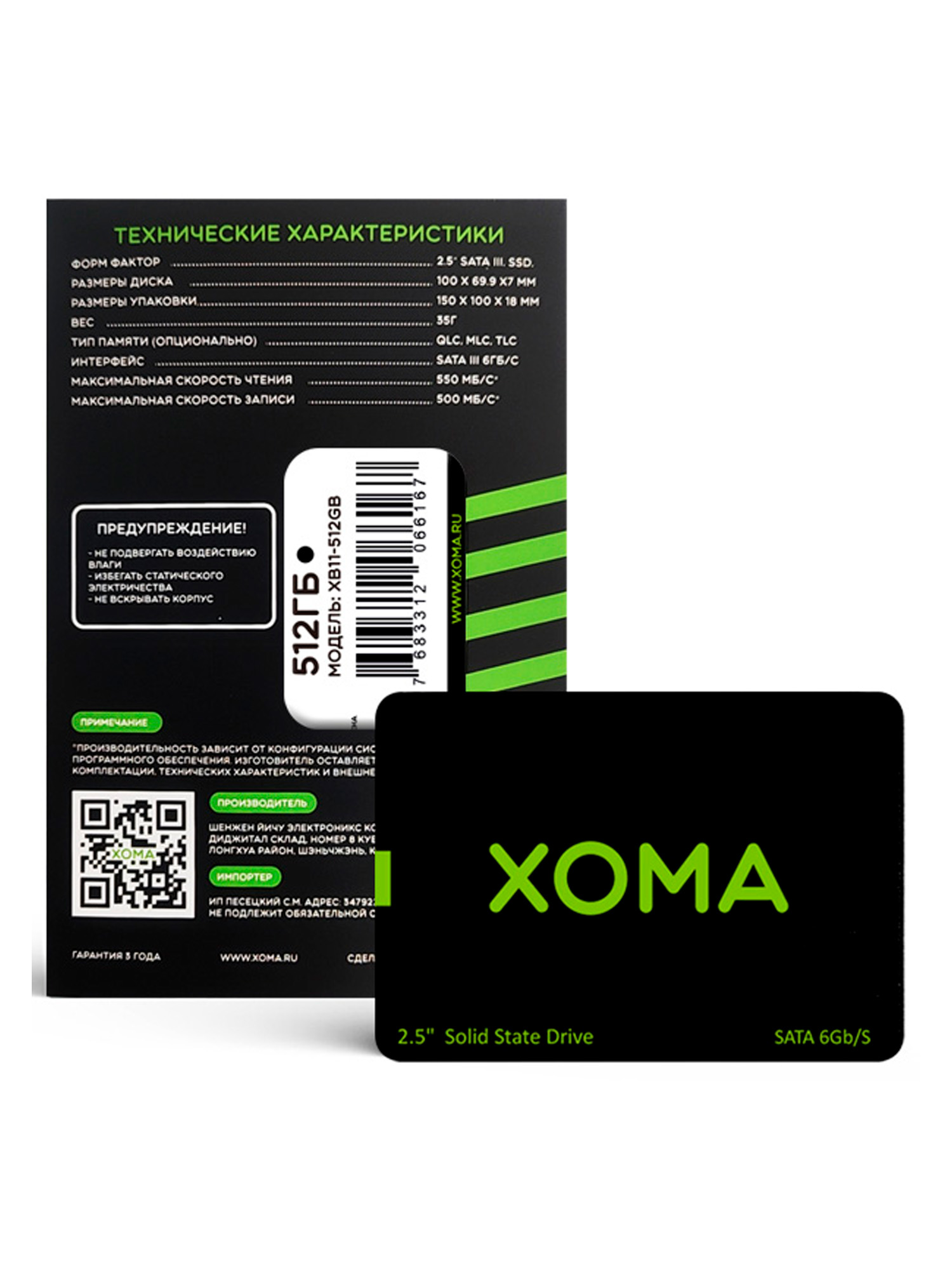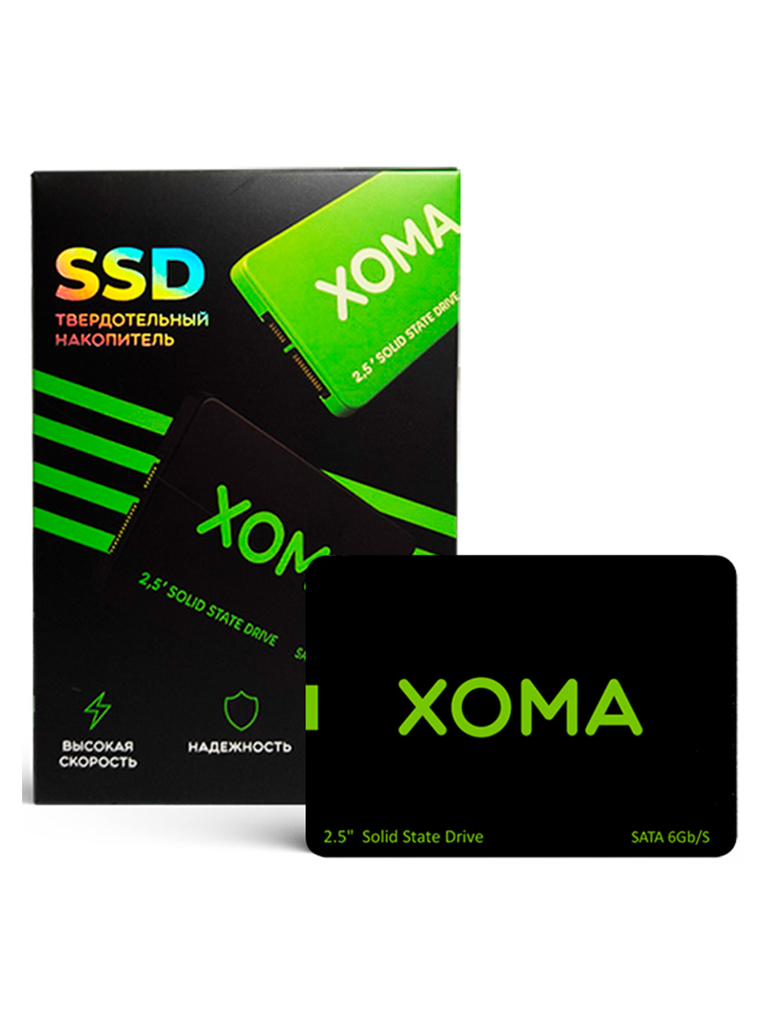 SSD диски XOMA прекрасная возможность увеличить производительность и скорость работы вашего компьютера или ноутбука. Скорость загрузки увеличится в несколько раз по сравнению с обычным жестким диском HDD. Данные диски можно использовать в Sony PlayStation 4 (PS4). Так же у SSD отсутствуют движущиеся части, что повышает надежность всего устройства. Время наработки на отказ у дисков составляет 2000000 часов. SSD XOMA долго прослужат вам верой и правдой, сохранят ваши данные и подарят комфортную работу на обновленном компьютере или ноутбуке.